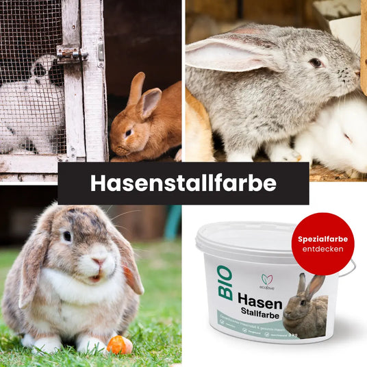 Kalk im Hasenstall? Kalkfarbe eignet sich besonders gut für Kleintierställe, da sich dort oft Krankheitserreger festsetzen und die Gesundheit Ihrer Haustiere gefährden. Diese Kalkfarbe eignet sich für Hasen- oder andere Kleintierställe. Jetzt Hasenstall streichen und eine perfekte Umgebung für Ihre Kaninchen schaffen.