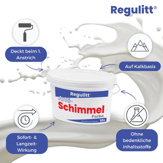 Wenn du Wert auf nachhaltige Hygiene & sichere Wände legst, ist Regulitt® Anti-Schimmelfarbe die beste Wahl.