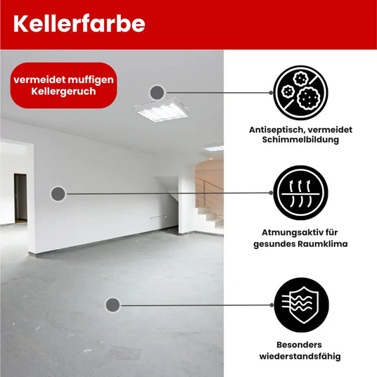Die Farbe bietet optimalen Schutz für feuchte Kellerwände. Ihre atmungsaktive Formel verhindert die Bildung von Schimmel und sorgt dafür, dass die Wände atmen können.